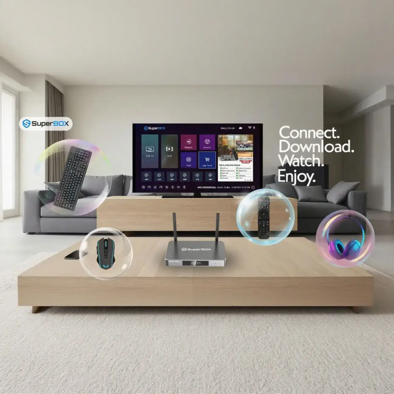 A SuperBox is a high-performance streaming device designed to simplify home entertainment. It allows users to easily access and stream their favorite content in high resolution, featuring advanced technologies like 6K support, fast WiFi, and voice control for smooth, hassle-free viewing.