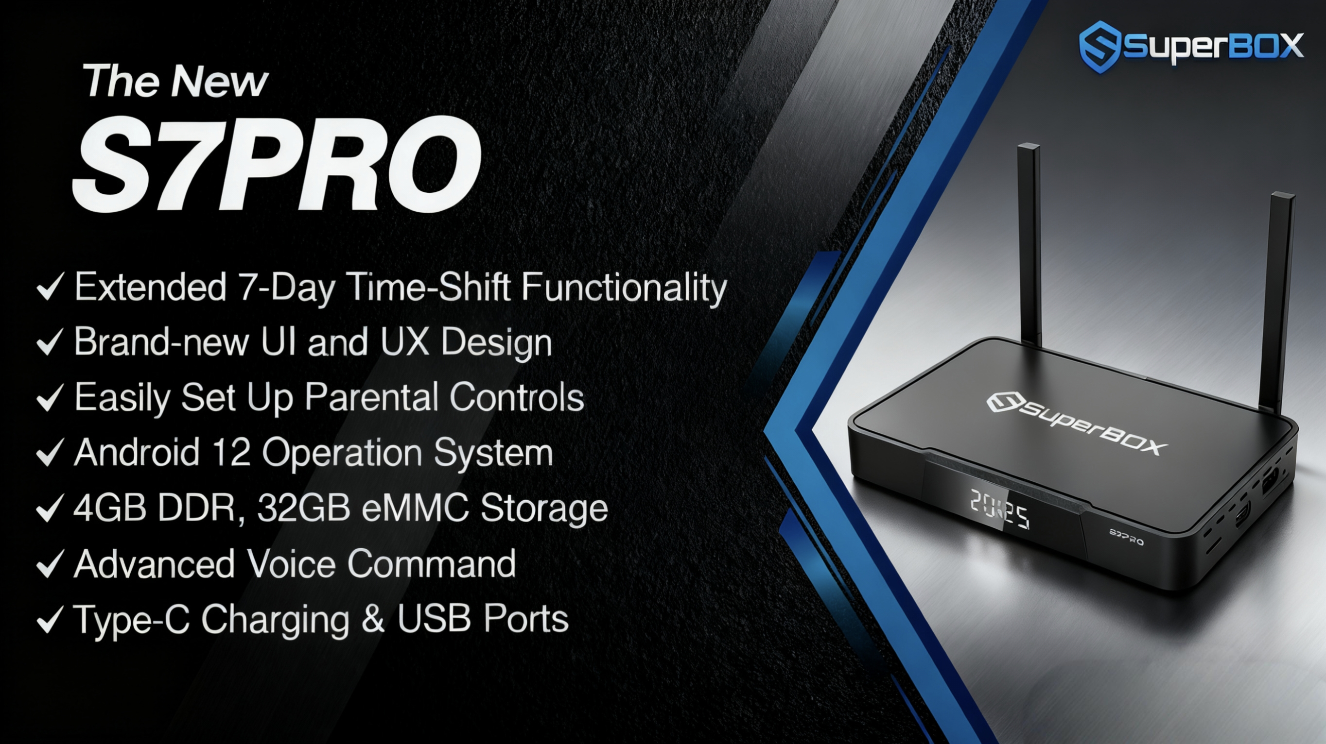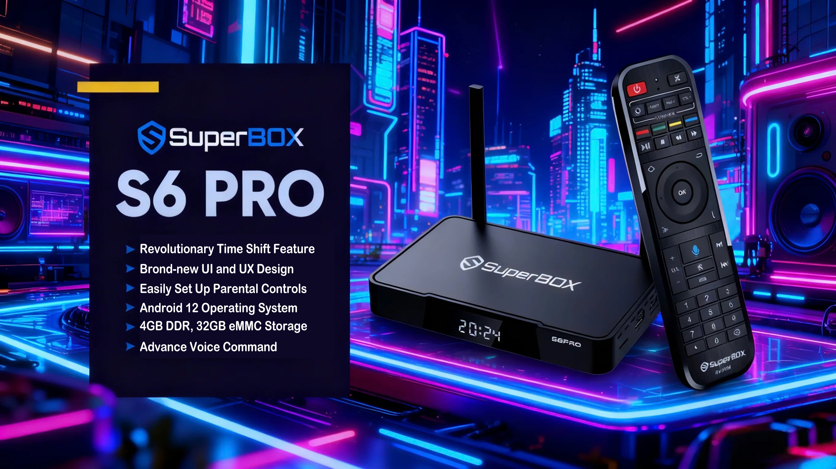 Take charge of your entertainment with the Superbox' intuitive controls. Whether it's voice commands or the easy-to-use remote, navigating through your favorite content has never been easier. Enjoy more time watching, less time searching.